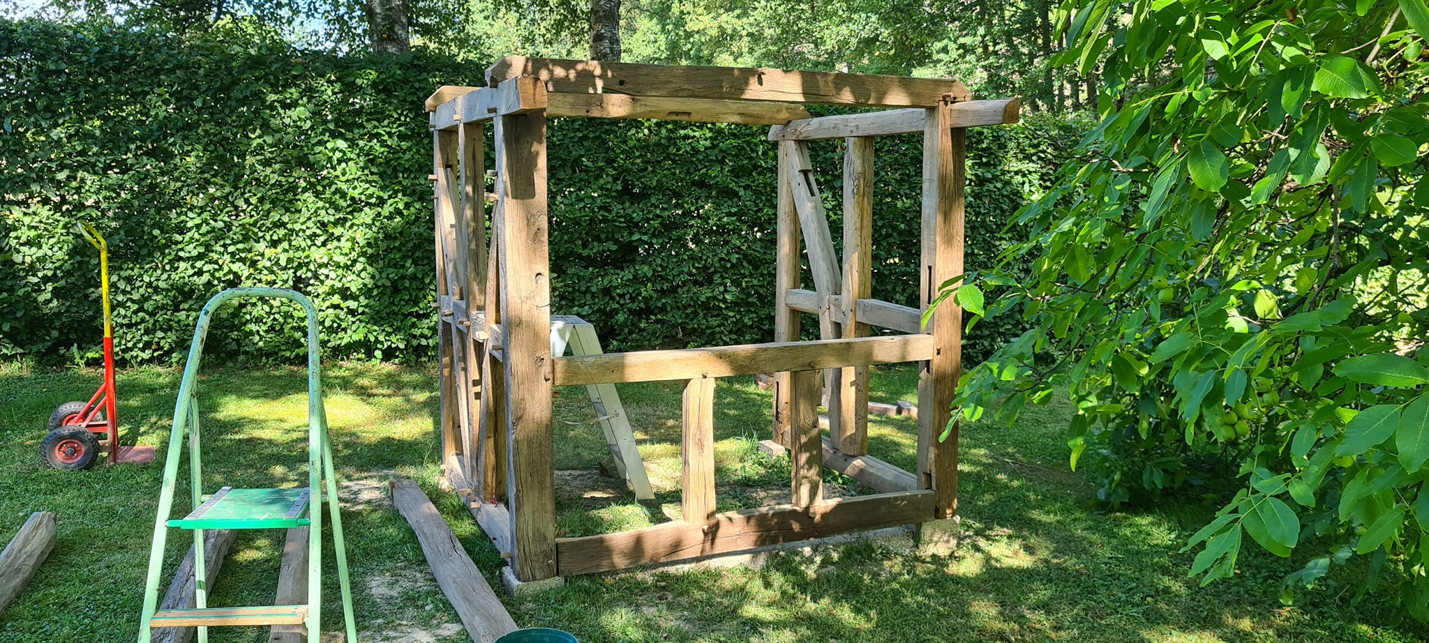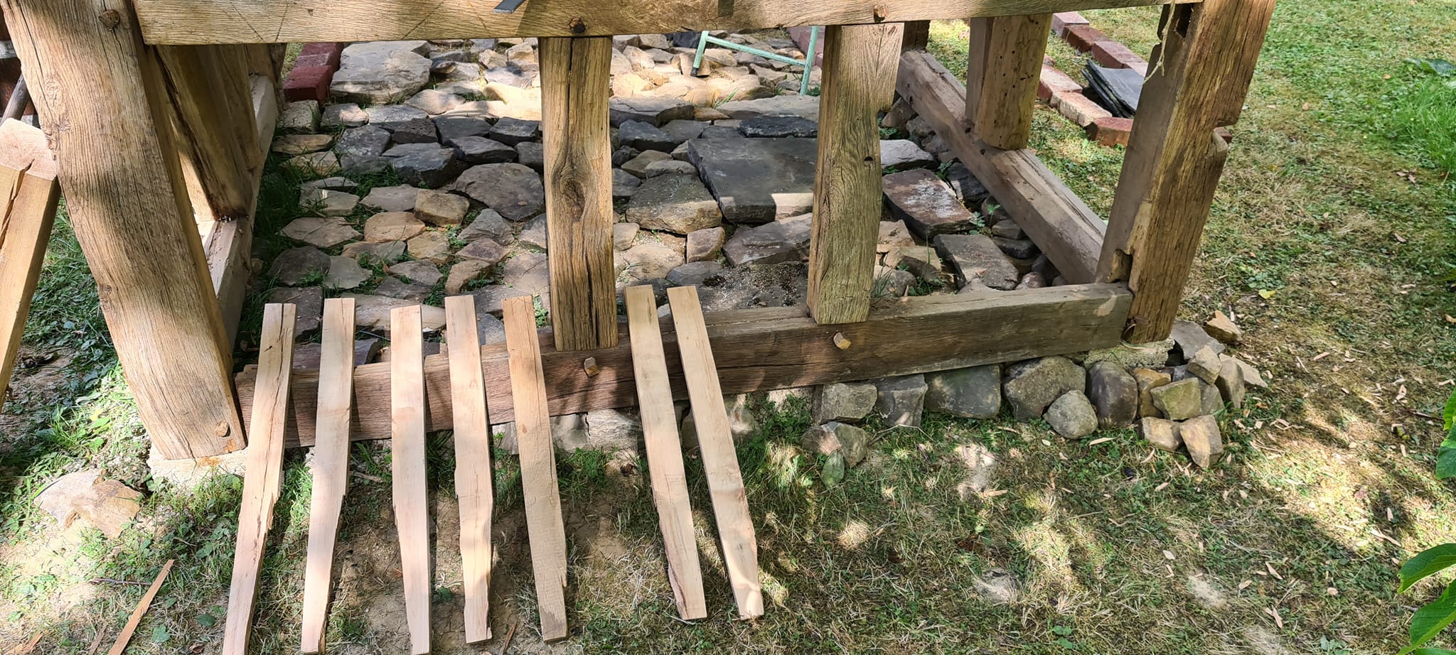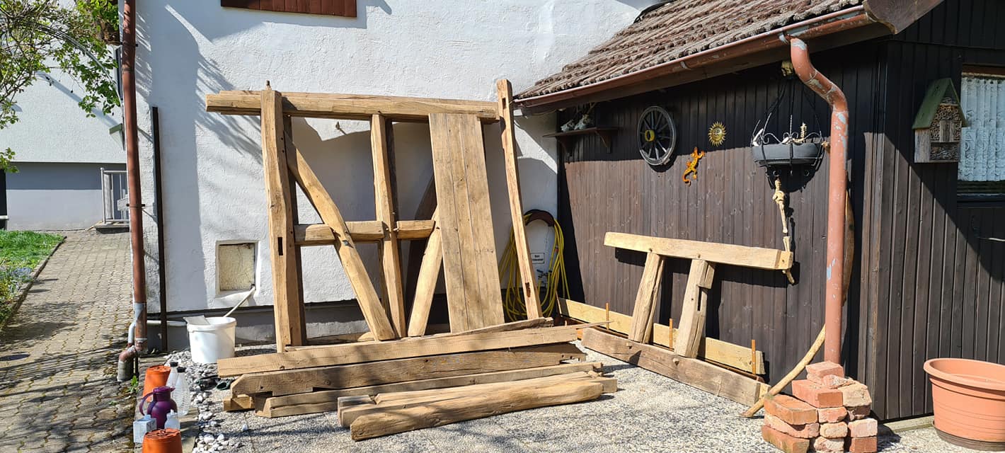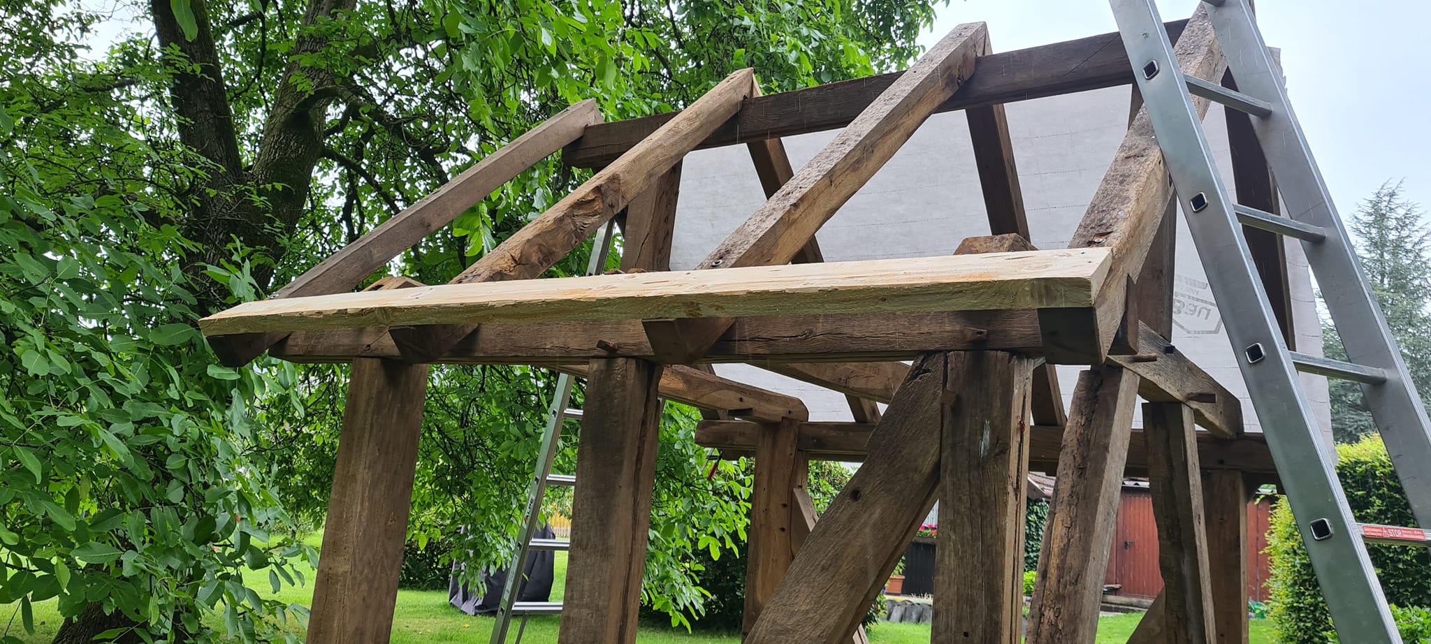 Die Arbeit mit der alten Eiche stellte sich als echte Herausforderung heraus. Weder Stichsäge noch Kreissäge konnten sie bezwingen, weshalb die Entscheidung fiel, die Sparren mit einer alten Bügelsäge von Hand zu sägen. Genau wie bei der Arbeit mit Menschen, wenn man auf Hindernisse stößt und neue Wege finden muss, war diese Erfahrung lehrreich.
