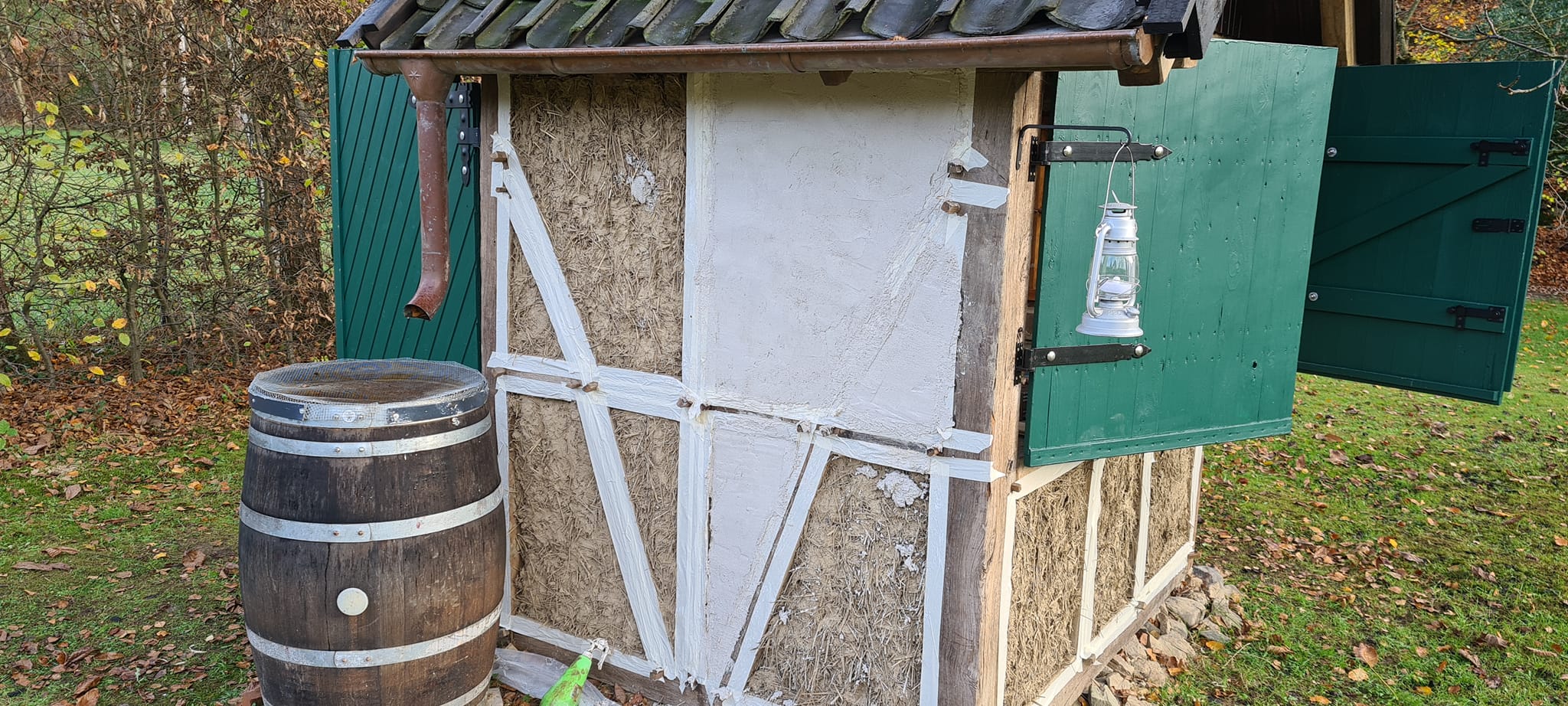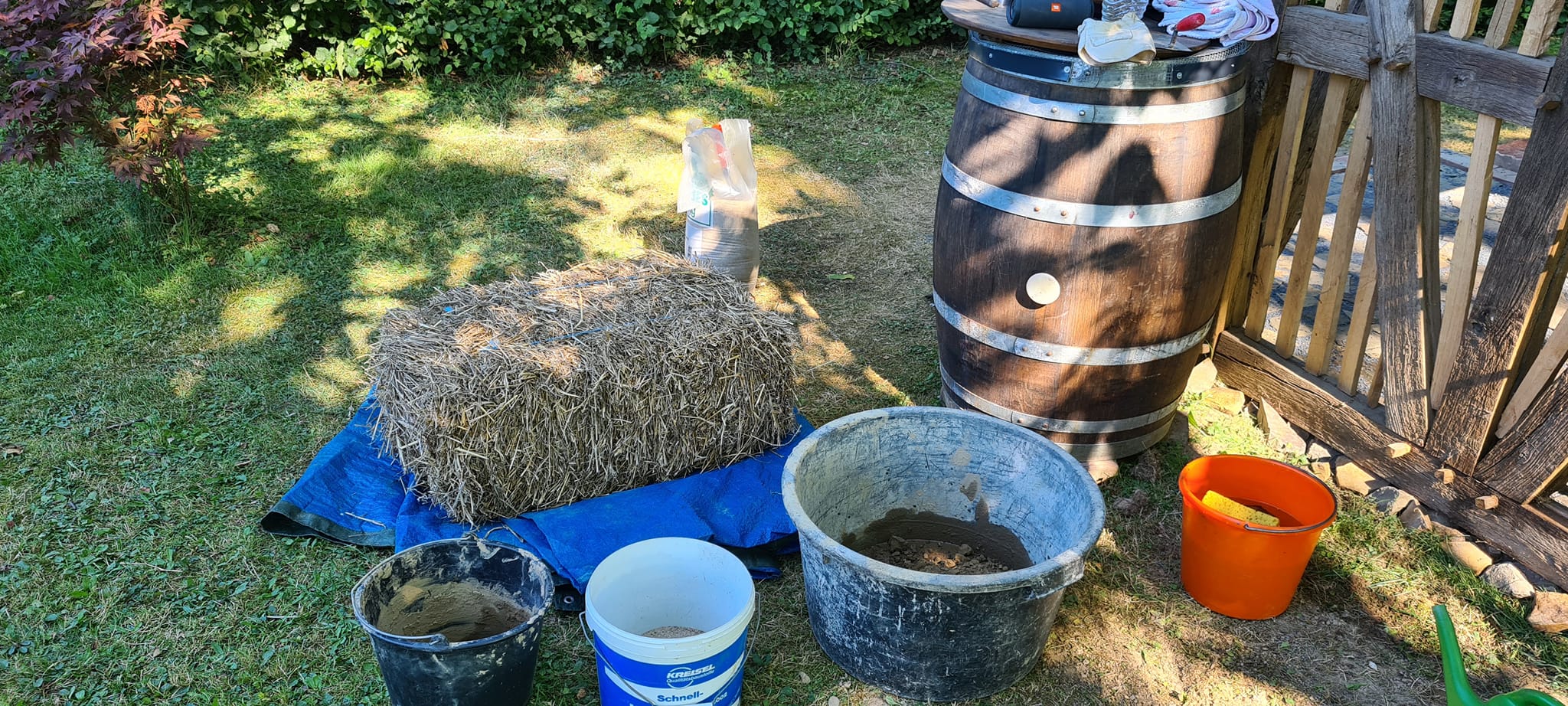 Auch der Lehmboden aus dem Garten erwies sich als perfekte Grundlage für die Verfachungen. Mit grobem Stroh, das von einem lokalen Bauern stammt, wurde der Strohlehm selbst gestampft und in die Fächer gefüllt. Es war ein Prozess, der Geduld und Präzision erforderte – ähnlich wie bei jeder langfristigen Entwicklung, die von innen heraus entsteht.